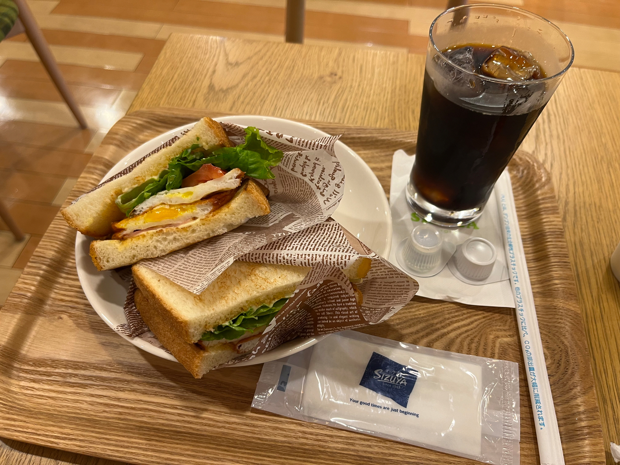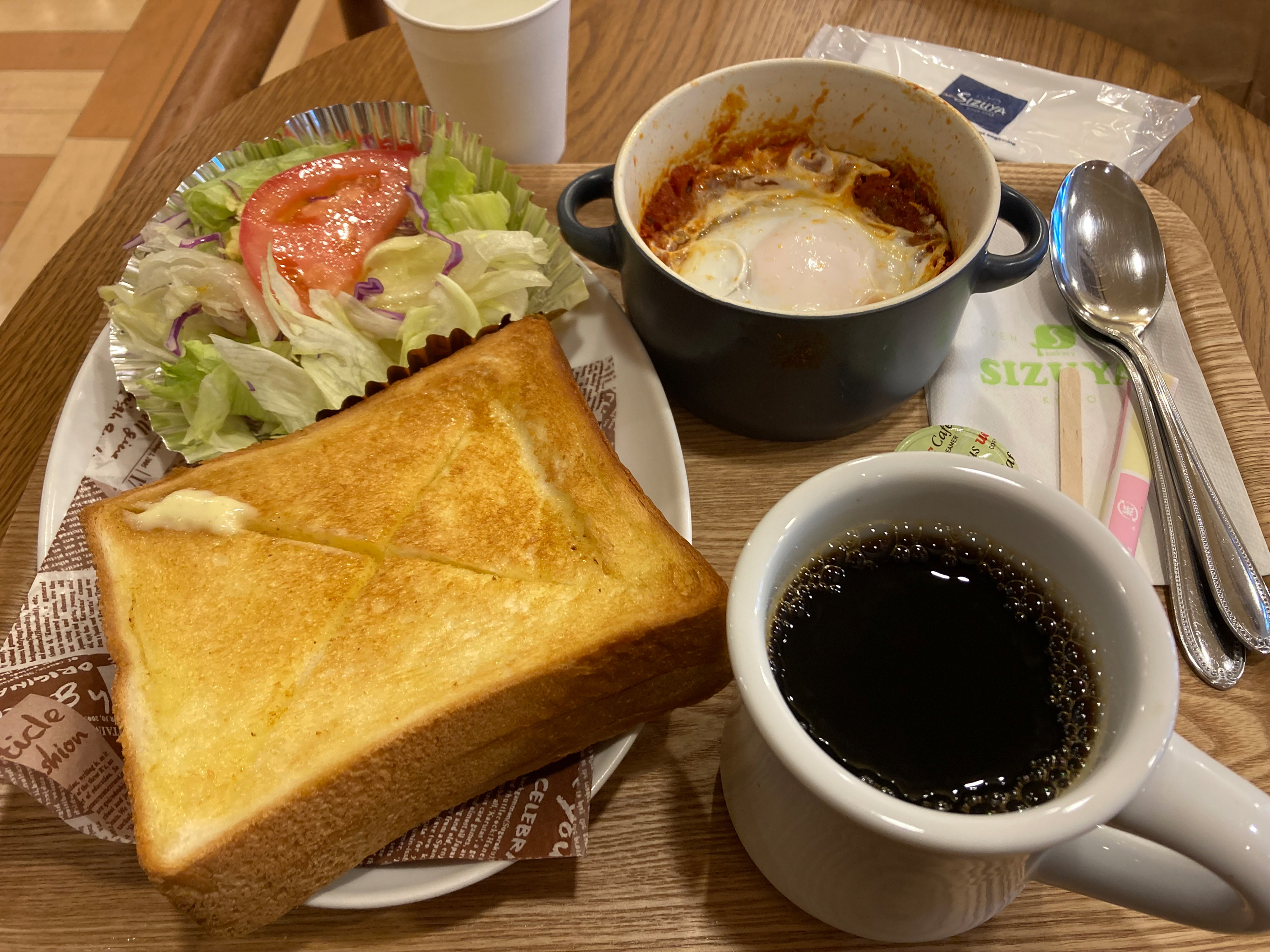 一楼点餐后,选好座位稍等片刻,就可品尝到现场烤制的美味吐司。现烤的吐司外层焦香可口,内层清甜松软;配上浓厚馥郁的咖啡,真是绝妙享受。选择不同的套餐,即可搭配新鲜时蔬,或是蛋白质丰富的水煮蛋,或是鲜香浓郁的西红柿番茄汤,等等。不管是作为早餐、中餐亦或是下午茶,都是十分理想的选择。