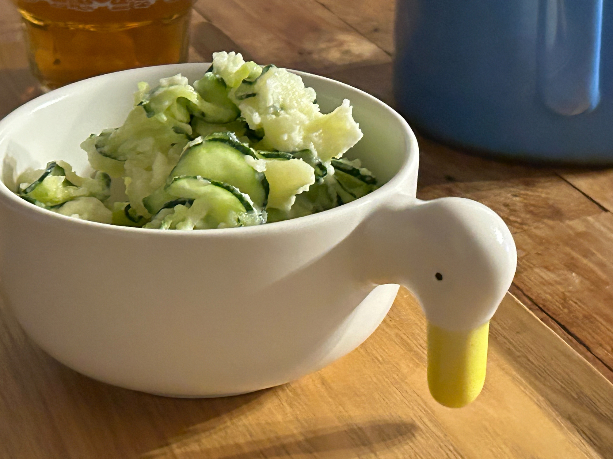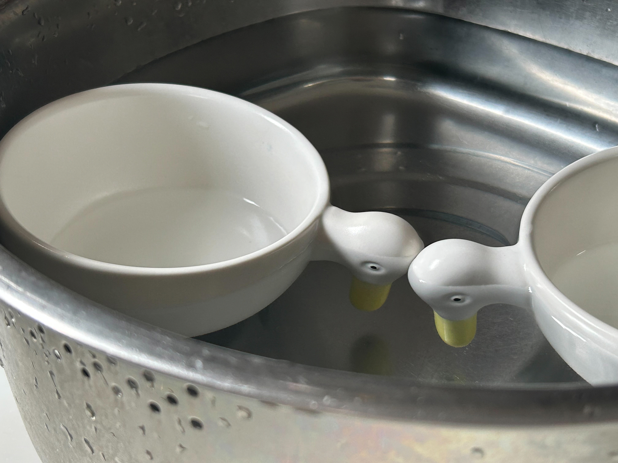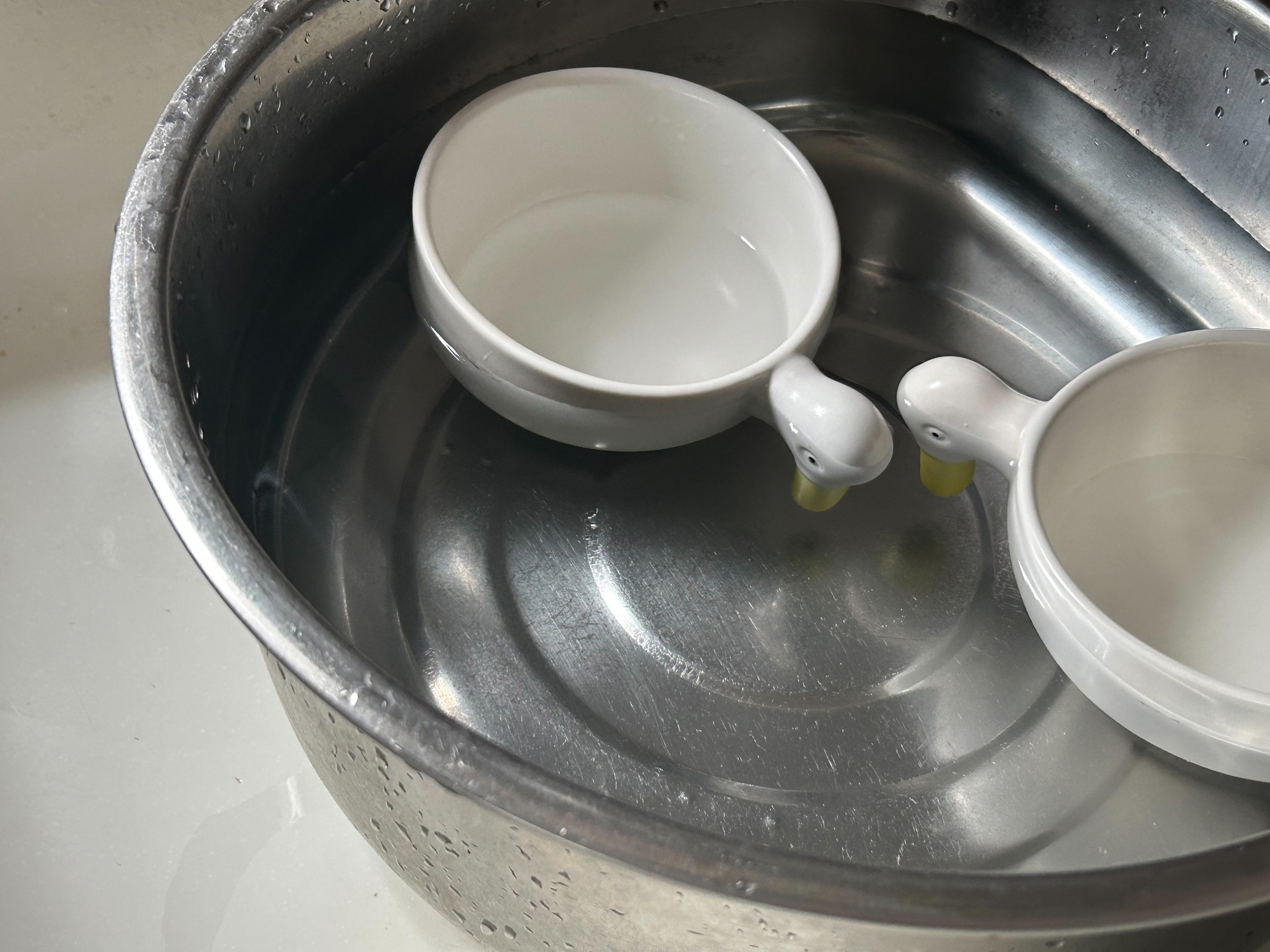 July 30, 2025 【小鸭子漂呀漂】站在厨房里,偶然一看水槽,发现小鸭子正在漂呀漂。看到那副令人怜爱的模样,我情不自禁地拿起了相机。 【小鸭子漂呀漂】 站在厨房里,偶然一看水槽,发现小鸭子正在漂呀漂。看到那副令人怜爱的模样,我情不自禁地拿起了相机。 两只小鸭子悠然自得地漂浮着,仿佛非常惬意。有时轻轻碰头,有时又背过身去,就像是在水边玩耍一样。看着它们,不知不觉地心情慢慢放松了,充满了治愈感。 这是CERAMIC JAPAN出品的小黄鸭小碗,最近常常用来盛放南瓜浓汤、冷土豆浓汤、巴西莓果碗或冰淇淋等等,夏天的出场率也很高。 那天刚好沥水篮里放满了器皿,我怕万一堆得太高会摔坏什么,于是便先简单清洗了一下后,把它们先留在了水槽里。没想到竟能遇到这样的一幕,是购买时完全没有想象到的。 感受“可爱”,对我来说是一种非常重要的心灵元素。今后我也会期待与那些意想不到的“可爱”相遇,珍惜并长久地使用这些器物。 CERAMIC JAPAN的小黄鸭小碗 https://www.shokunin.com/cn/ceramicjapan/ahiru.html